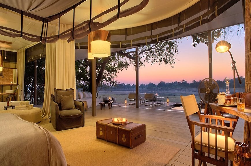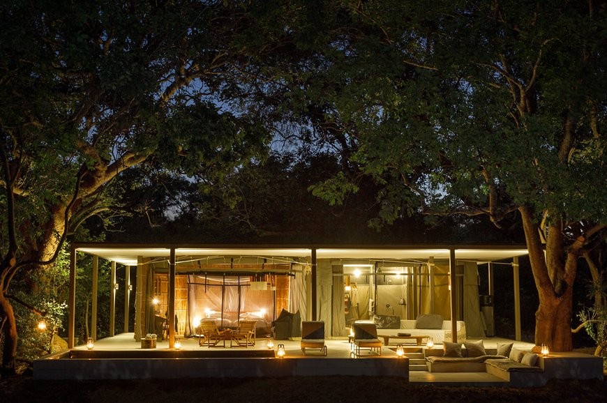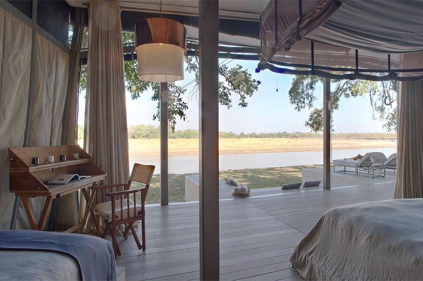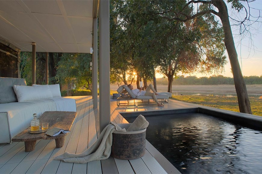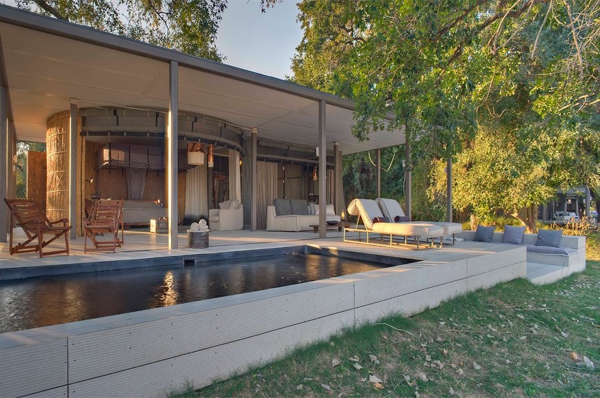 Projetado pelos premiados arquitetos Silvio Rech e Lesley Carstens, Chinzombo é o primeiro acampamento de luxo da região. Recorrendo a materiais naturais e recicláveis, com o respeito e a preservação do meio ambiente em mente, a dupla de arquitetos quis manter vivo o espírito de Norman Carr, fundador do campo, que sempre promoveu safaris que respeitavam o ambiente, a paisagem e as tradições locais.