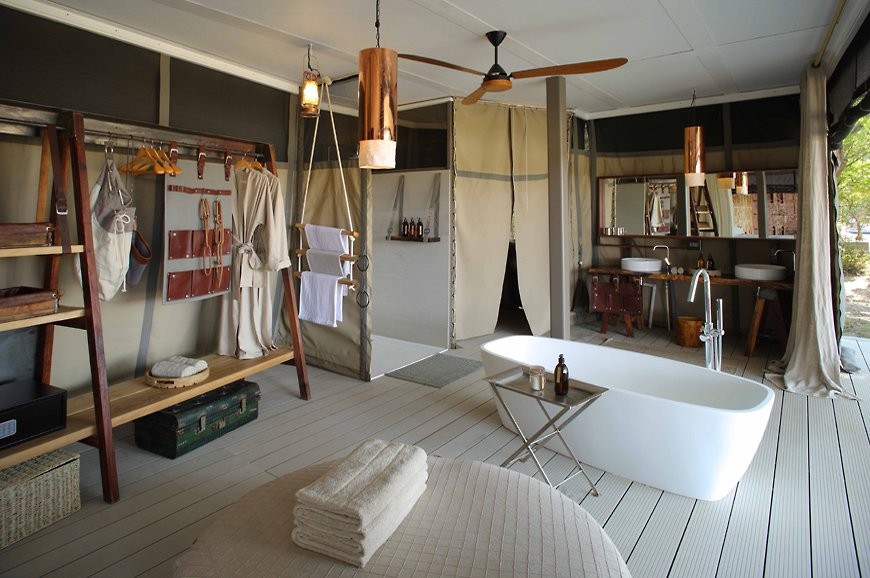 É ou não é um sonho? Passemos às apresentações. Caro leitor do Casal Mistério, apresento-lhe Chinzombo, um acampamento de luxo totalmente integrado numa paisagem de cortar a respiração. Com uma decoração minimalista e em tons neutros, o interior e exterior fundem-se com uma subtileza tal que nem nos apercebemos que já saímos do quarto e estamos em plena savana africana.