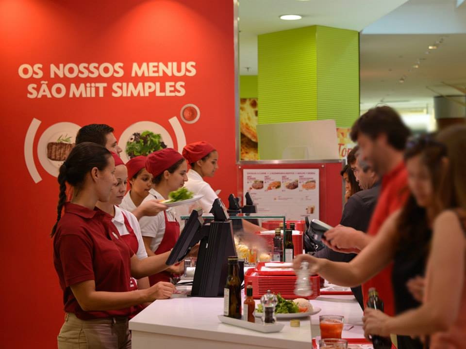 Nós estivemos no espaço do Colombo (que abriu há menos de um mês) e aí a área da restauração à hora do almoço é o equivalente à feira de Joane num sábado de manhã. No entanto, com as crianças a tiracolo e o escritório à minha espera à tarde, não tive muita margem de manobra. De qualquer forma, o Miit já existe também no Centro Comercial Vasco da Gama (onde, aliás, decorreu um dos primeiros Meets organizados pelo Facebook e televisionados pela polícia – oh, meu Deus, como o restaurante deve estar arrependido do nome que escolheu...), no Cascais Shopping e no Norte Shopping.